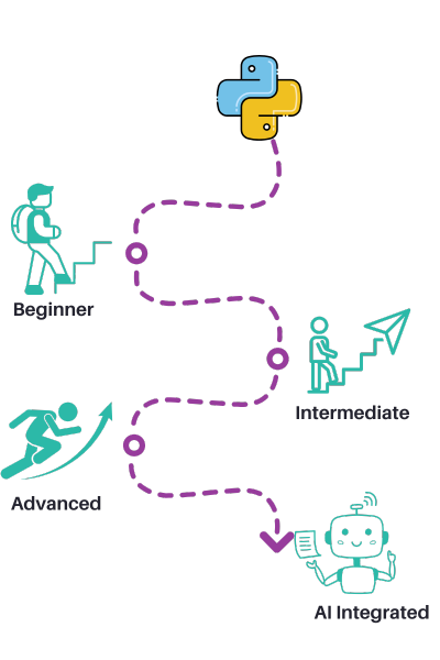 The structure of our Python track enables students to establish a strong foundation in the syntax quickly, facilitating a smooth transition into our High School Program or serving as a robust standalone foundation.